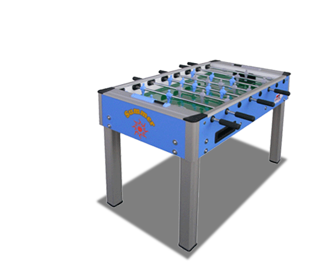 Tavolo senza gettoniera con recupero goal da due feritoie poste sul fianco del mobile.
